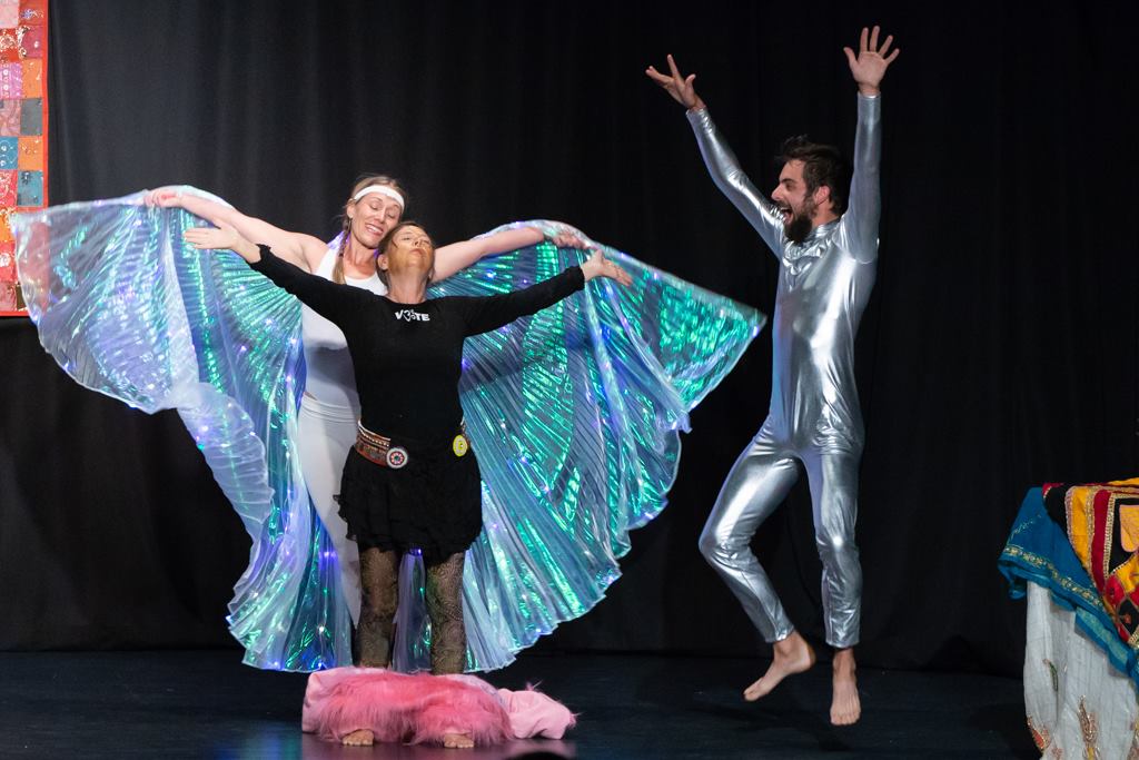 Blending Bollywood, performance art, and political satire, the Smokebrush Players preformed at the 2018 World Dance Festival tot he bemusement of the antendees.