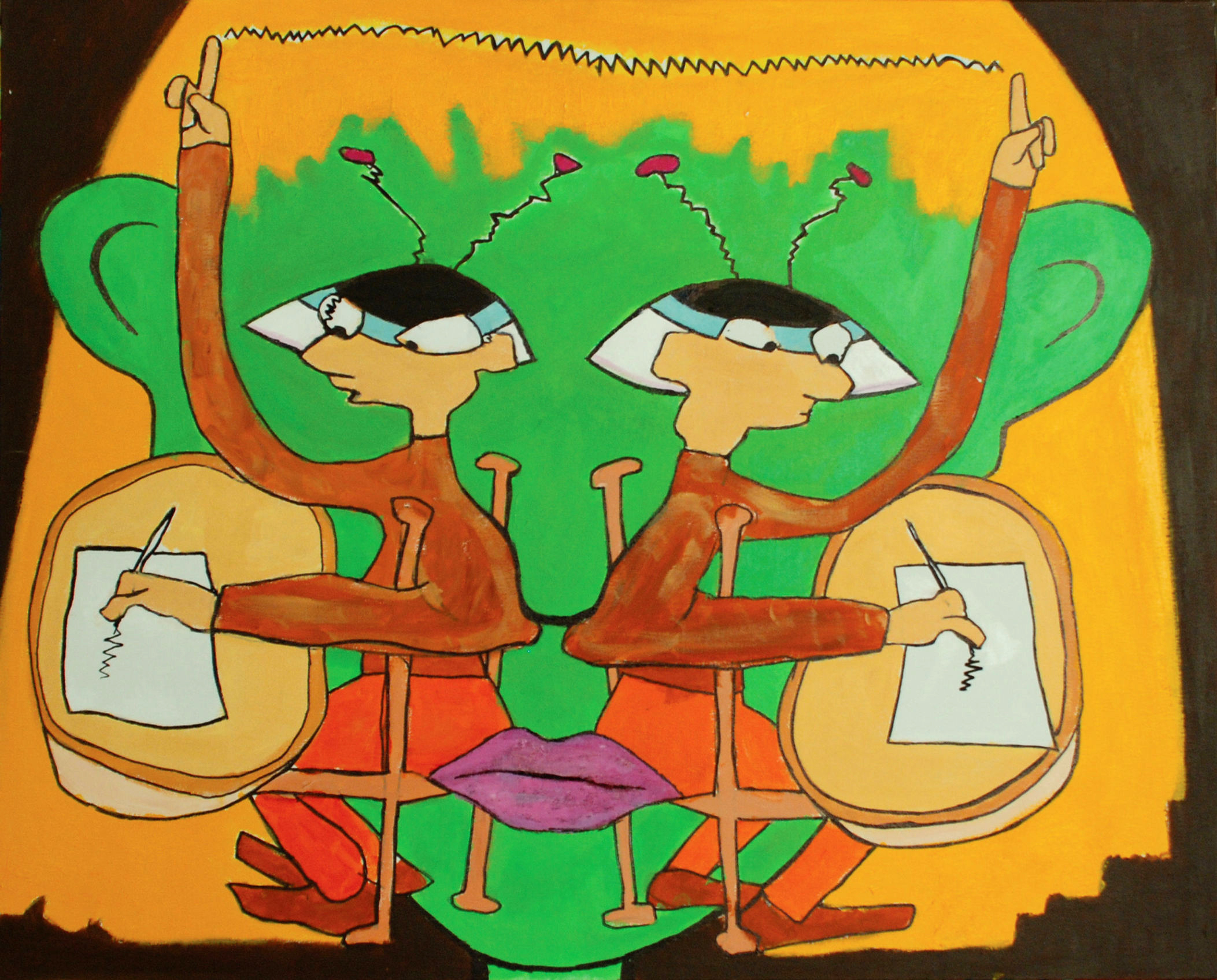 Using both hands to paint at the same time stimulates both sides of the brain. This powerful and meditative experience produces very unique and symmetrical results. And with Kat’s whimsical expressions, the end pieces is both unique, fun and has many layers and faces.