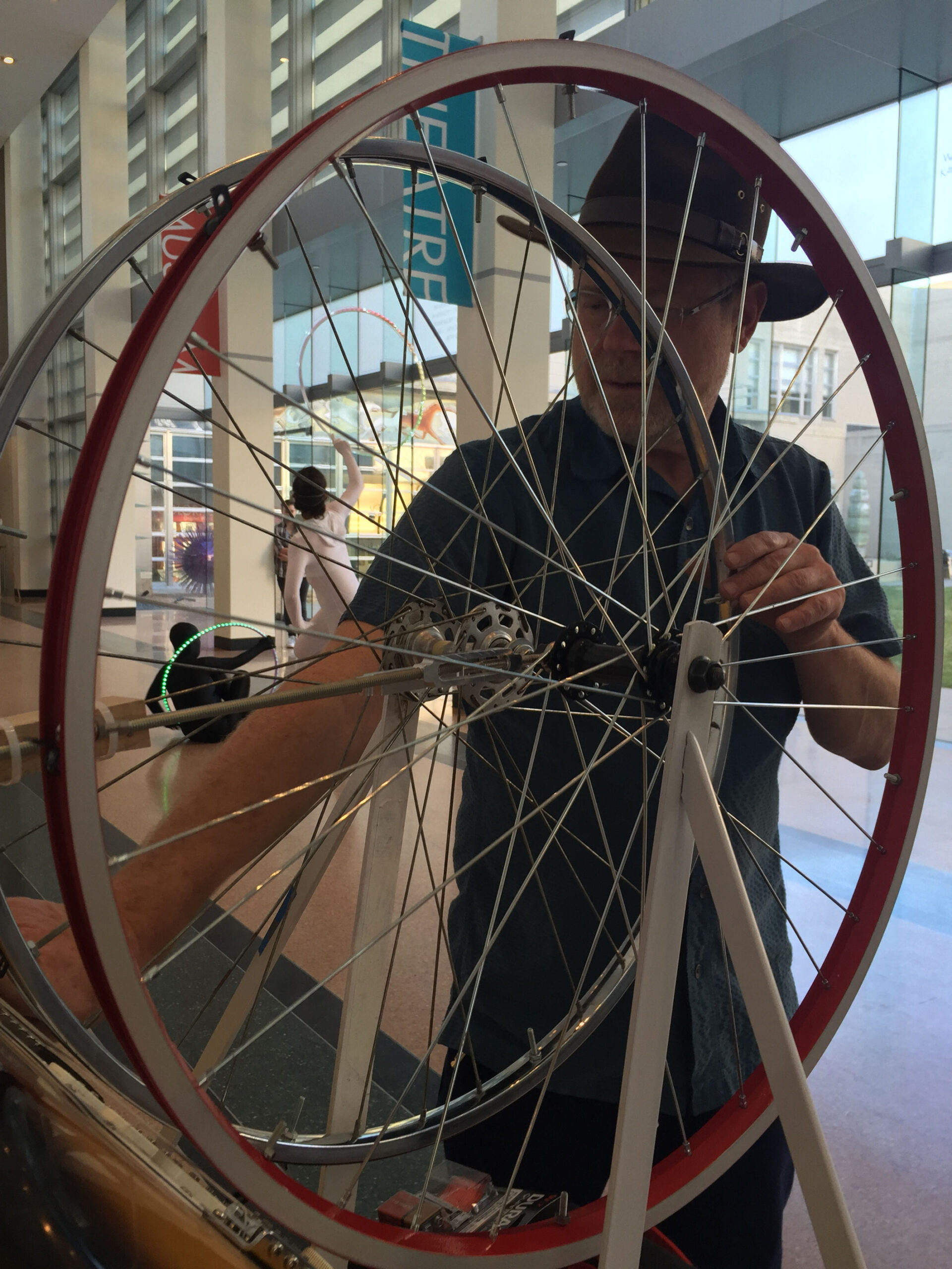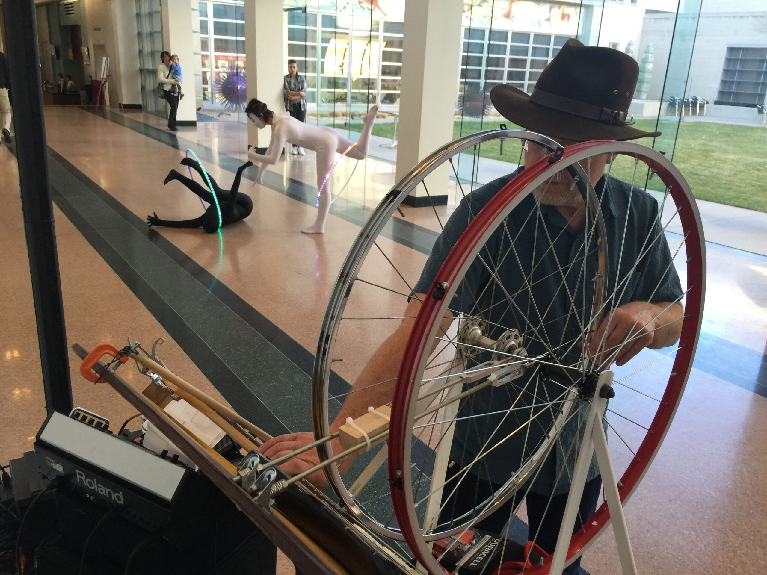 Bob Tudor playing his self strumming guitar at the Fine Arts Center in Colorado Springs.